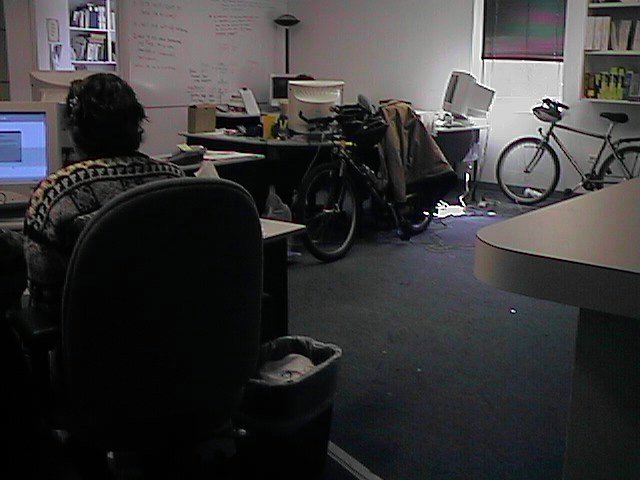 More of Martha and bicycles. The other guy in a sweater (behind the right monitor) was some Hindu, by name Mohan, who came to work here and stayed for two days. I have no explanation, he simply came the next day and sort of did something, then didn't come back from the lunch break. He did come across as somewhat dimwitted, but whether it was because of tongue or head, I wouldn't know.