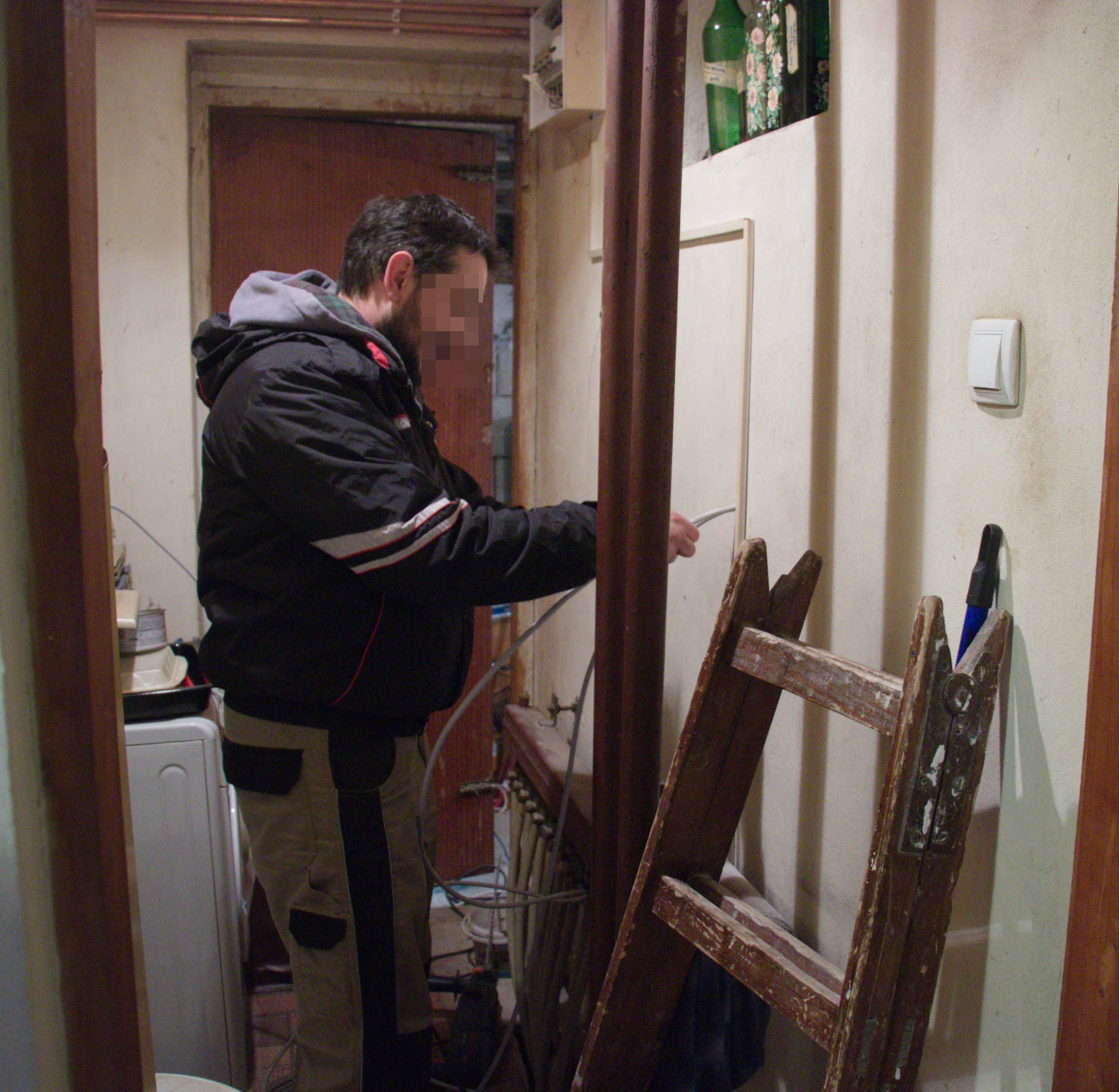 Mića came in the afternoon to do the final moves after the old tankless heater was unhooked. The three-phase cable which fed it is now split into one for the gas heater in the garage, and two outlets on the terrace. And he took out the old relay he installed to switch off the electric heating when water was heated for the faucets - together they would require something like 40 amperes or worse, we simply didn't have a cable that strong.