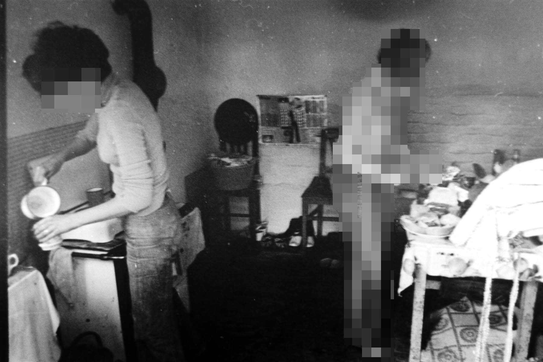 Đenđi (left) still lived in the basement (... 14 words...). That current place belonged to Đenđi's grandmother (of sorts, perhaps grannyaunt), and this was the reason to meet several times and just sit with the old lady. She would cook sometimes, some interesting recipes. Some roast filled fish, and her special recipe for pašteta are something we still remember. This was probably shot in her kitchen, for it resembles none of the other places from the time.