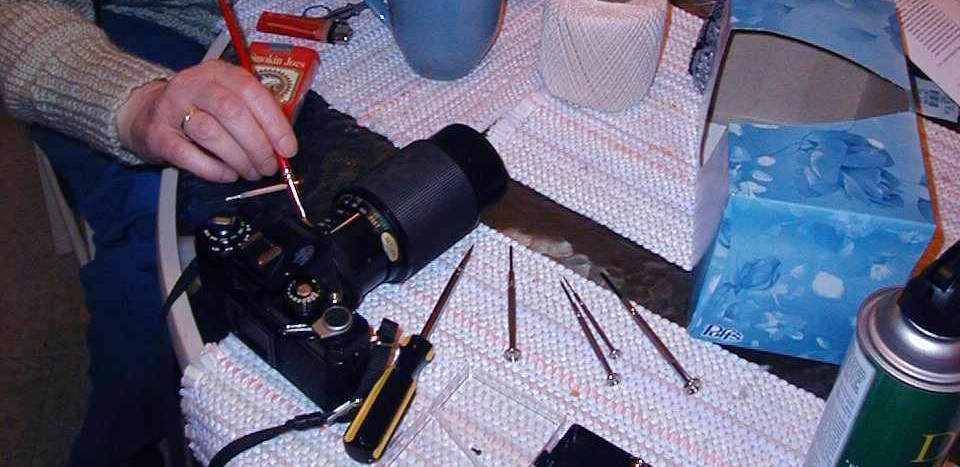 We managed to open it from both upper and bottom sides, and by some fit of imagination found one lever which got stuck. Unstuck it and it worked and even didn't get stuck again. We took it to Go the next time, she'll need it. Garnished it with my old flash from 1974 and the 30mm lens I bought in Amsterdam in 1976.