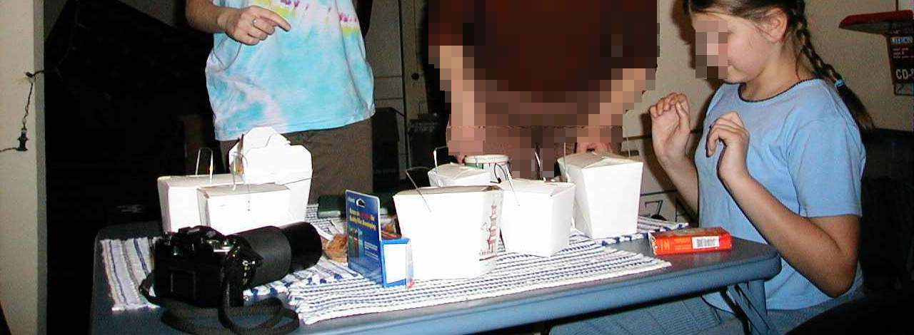 The grub, then, was cheap and copious. For 35 dollars six of us had our fill, plus they'll have one more meal, and Lena had some for the road, so we can count this as nine or ten meals for the money. In the smaller boxes (plastic laminated cardboard with wire handles) is the rice, in two more the spaghetti (the original, not what that Marco from Pula wrote down the recipe and carried over to Italy), and in the rest the vegetables and meat. We also got a dozen little bags with sauces, and of course a fortune cookie each. The fortune isn't much of a prophecy, more a proverb or some such, and on the back of it there are your lucky lotto numbers... so believers will believe :). Didn't get any chopsticks, though, got plastic forks.