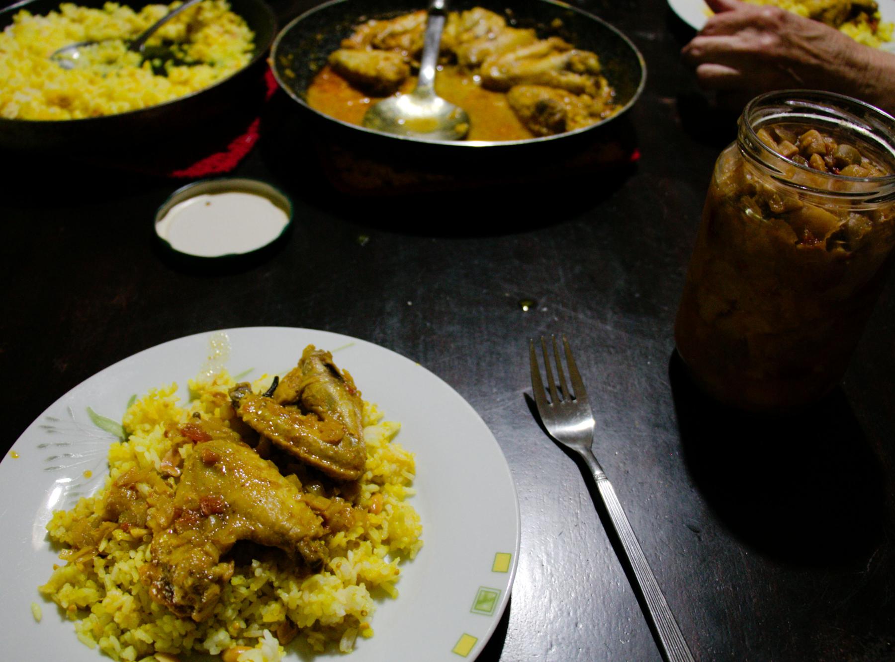And we had that poultry curry for lunch. She thought the frozen nugget was drumsticks and thighs, but nope, wings. No fault at all, turned out great, has exactly that smack which I didn't taste for years. Exactly the deja vu, I recognized but can't remember what I recognized and when was it, could be something from twony years ago. The remaining four wings and rice I'll do for dinner today and tomorrow, while she'll make another čorba or something for lunch. There were actually just three wings left, but no matter, I stuck to the plan and felt fine. For next frendz parti, a pork curry.