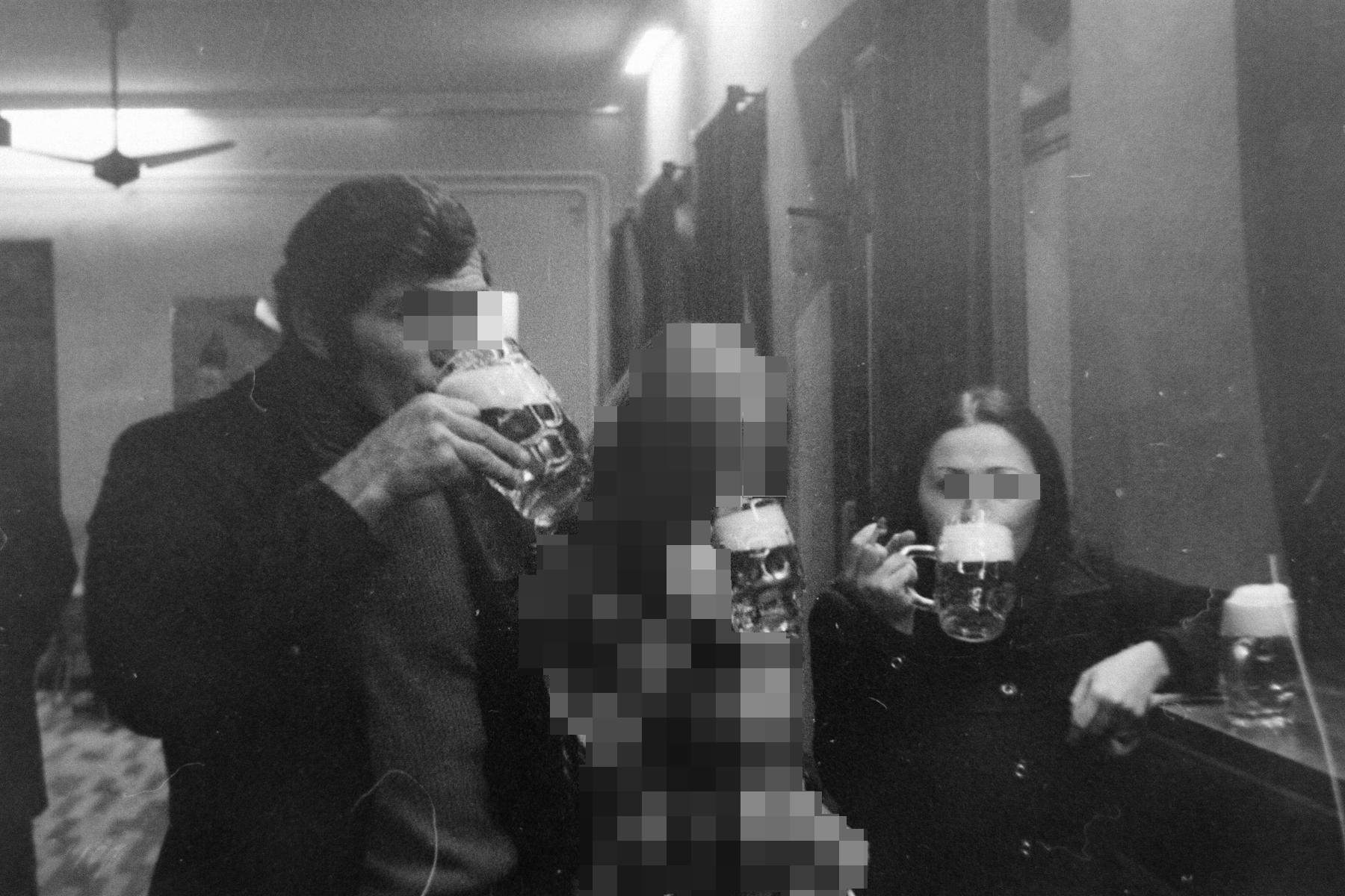 At the time, I was wearing my railroad-style coat (that I wore the previous couple of winters as well, it was almost a šinjel, and it was probably already extended by that extra foot of faux mahagony colored fur), split beard Turgenjev style, and my hair was probably as long as it ever was. She may have already made her own coat with colored piping around cuffs and pockets, or was it the next year... I wouldn't know until I dig up the photos.