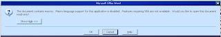 (The document contains macros. Macro language support for this application is disabled. Features requiring VBA are not available. Would you like to open document read-only? (9))
