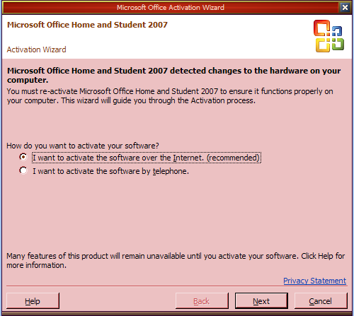 Морате ре-активирати Мали мекани Офис Дом и Студент 2007. да обезбедите да функционише како треба на вашем рачунару. Овај чаробњак ће вас водити кроз поступак Активације.