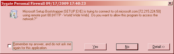 А, да, био сам обрисао нешто из кеша при последњем чишћењу. Па шта - сваки софтвер који кешира, ради то само да убрза приступ до нечега, мада не видим зашто би кеширање нечег на диск убрзало приступ диску... ајде да сам скидао са мреже па да то кешира, али не - не би га пустио мој пожарни. Ал' јесте покушао да зове кући: