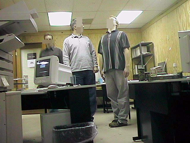 Шестог сам ово шкљоцнуо - Рик и Брља су повисоки, па су се надгорњавали. Лево иза је Лари. Ово је бочна соба, неповезана са остатком фирме, ако не рачунамо ходник, који смо делили са оним судским преписивачима и можда још неким, и кућну мрежу. Осим мене и Рика Нетера, ту су седели и Тед, добричина са ситним психичким проблемима, које је савладао вежбом, и понекад Марта.