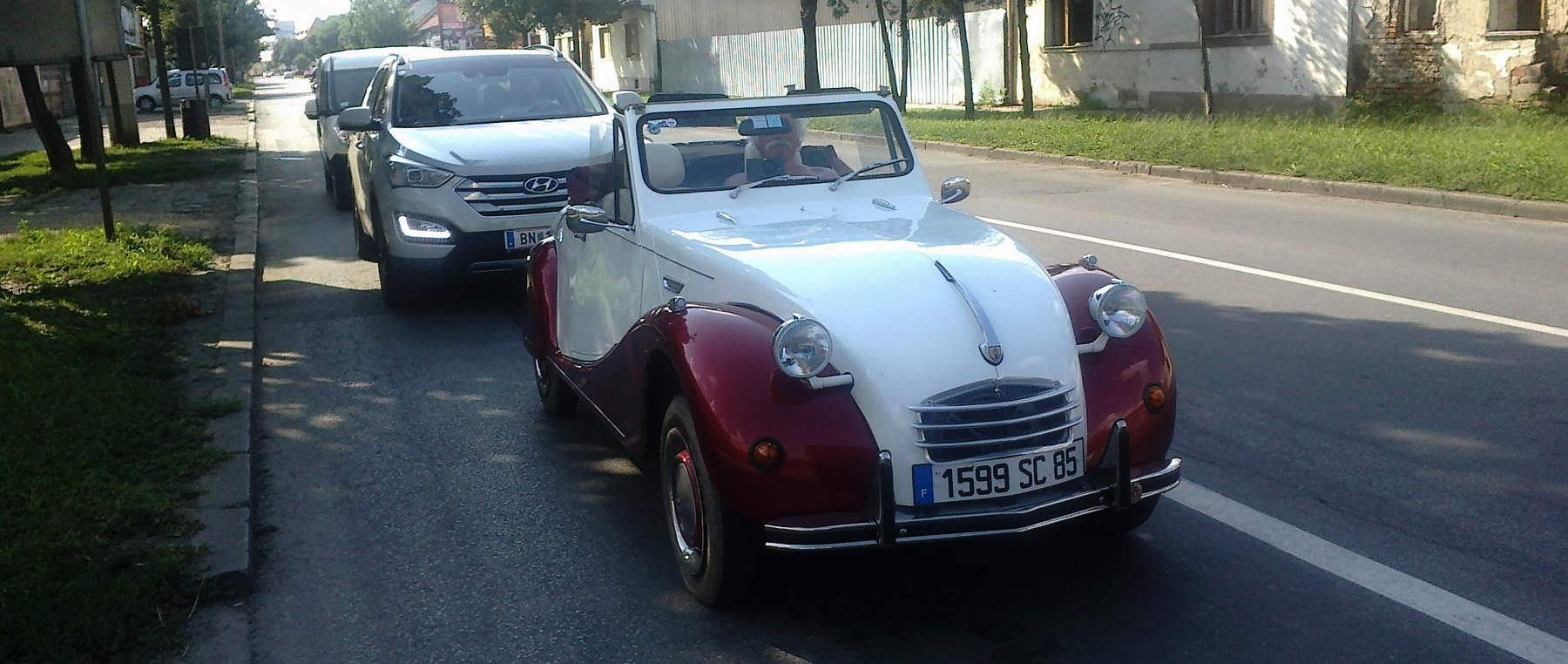 Прекјуче сам нешто ишао у град, бициклом, немам појма зашто, можда опет тек тако да се возикам. Нисам носио фоткалицу, па кад ми се десило да сам на семафору код гробља спазио овог спачека, није било друге него да извадим ноклу из џепа и нанишаним. Мимиком питам исписника за воланом јел може, климне главом и... ето снимка.
