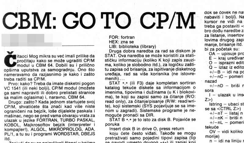 Често сам седео око рачунара са Миком Фишером. Нисмо били компатибилни, наравно, ја спектрума а он комодора, али смо доста научили један од другог и од својих машина. Имао је он својих трикова, например да рецне омот дискете где треба па да једнострана постане двострана, уместо 180 добије 360 килобајта, истина не одједном него "преврни палачинку". Имао је и донгл за з осамдесет процесором и још којечим, па би Ц64 постајао цепеем машина, што је било чудо једно и прави оперативни систем, умело и са правим дисковима. Проучили смо колико год да нам је време дозвољавало, па смо временом и написали чланак за словеначки "Мој микро" (што је био штос, ко се то уопште хвали како му је мали). И објавили су га, септембра. Ту нам се сарадња отприлике завршила, њега опет ухватило да проба да већ једном заврши тај машинац, што не знам како је испало до краја.