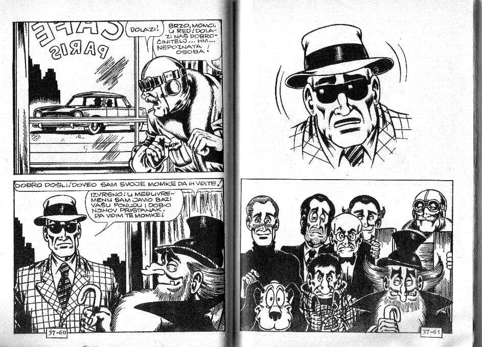 Лик у карираном оделу на првој слици је генерал Вор, из „министарства за истраживање руда и губљење времена“ (фраза коју и данас често налазим на форуму, некад и у новинским чланцима), од ког је остало „и нека дође и онај број 2 или 3, слабо памтим имена“. То сам често цитирам, кад промашим број нечега. Тај тип им често даје послове које редовне службе нису умеле да реше, тарифа је по кофер пара сваки пут, од чега Број Један задржи све а момцима да по долар.