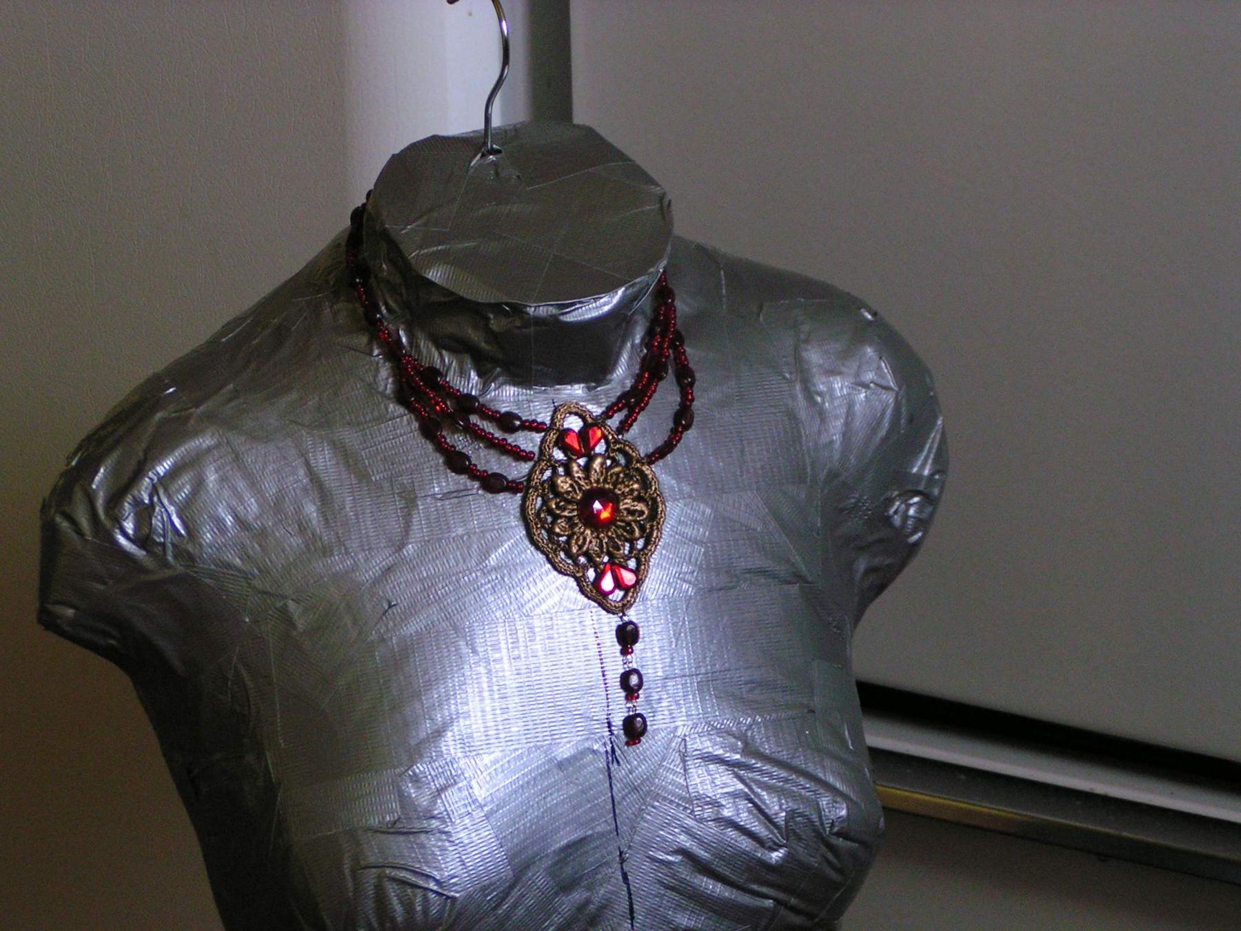 Модел обуче мајицу и онда то почне да се покрива траком, почев од кукова навише и наниже, у три слоја - хоризонтално, вертикално, хоризонтално. Где је кривље, сећи краће, где је равније може и дуже. Ова трака се не лепи нарочито добро на било шта осим саме себе, а онда држи ко ђаво. Три слоја направе прави оклоп, који се после расече с леђа (колико да модел може да изађе), залепи поново, у рамена уђе вешалица (купили), по висини га држи картонска цев (одсекли комад цеви који је био у тепиху, и то моторном тестерицом), остало се напуни масом за јастуке (купили пет кеса) и на крају одоздо затвори картоном (још траке). Трошак - око десетак долара од комада (ролна траке је 2,50), и још је по мери.