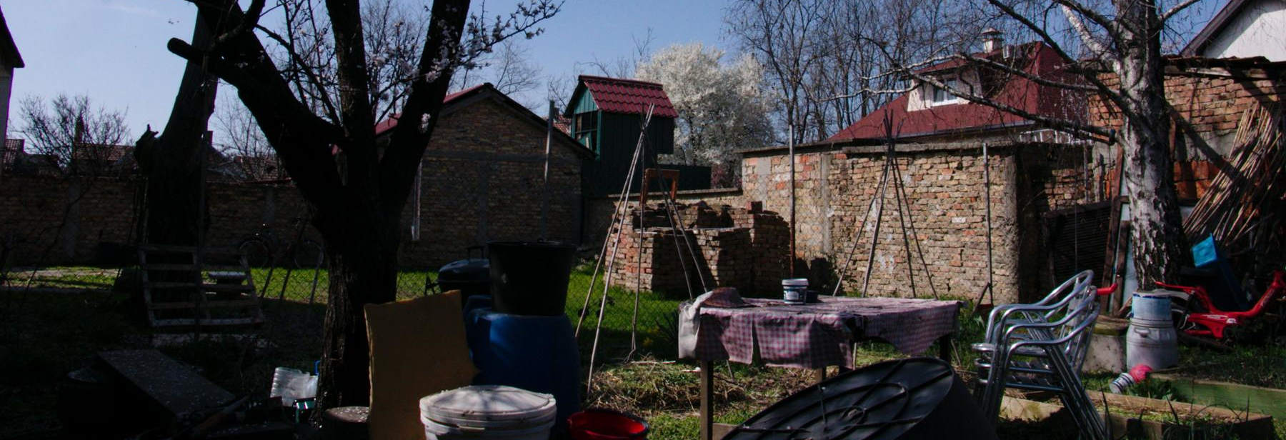 Она већ трећи дан гледа кромпире. Тј на јућубу гледа разне форе и фазоне како са што мање труда (нарочито копања) постићи што бољи принос кромпира. И јуче је и кренула са тим - преместила је онај њен сто, да не стоји више уз роштиљ, па ће ту да направи два круга, око метар и четврт у пречнику, ту да простре шта већ треба и неку ттзв. смртву коприву“ (која се код нас другачије зове, расте нам и то по авлији), поређа кромпир па то застре којечим, и сламом и земљом и чим већ. Берба заказана за почетак августа. Над тим круговима по вигвам од по пет бамбуса, ту ће да пусти боранију да му мало прави хладовину. Према Јулишки је поређала шест џакова са земљом и у њима по пар кромпира, а хоће да наспрам тога поређа још толико, па да направи три лука - по бамбус са сваке стране, спојен комадом тотратерм цеви од грејања - па да то покрије оном зеленом мрежом, те да и ту пусти боранију. Нек се зелени. [није тако испало, него без цеви - седми бамбус уздужно, као шатра]