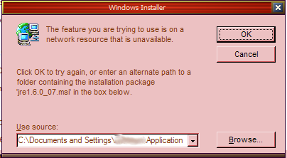 - рантајм за јаву в7. Већ сам на в11 или тако неком, што је онда 7 и даље међу инсталисаним? Јер не уме да се одинсталише. Што? Зато што се деинсталише инсталатером... а треба му цео инсталатерски пакет, који је тад био распаковао на најмању ми партицију, и никад ми више није требао, е сад му треба. Наравно да сам га давно обрисао, сметао ми је на це партицији, која је као заједничко дрво које свако куче запишава и вазда му понестаје места. Зашто сваки Пера, Мика и Лаза хоће да трпају ствари у мој c:\documents and settings? Мој документарни директориј је другде, на ку диску, где има неколико стотина гига, и уредно је регистрован за апликације. Чак и крене одатле кад кликнем на Browse (тај шашавко мисли да држим инсталатере уз документе, свашта). Па откажем и добијем „Извор инсталације за овај производ није расположив. Оверите да извор постоји и да можете да му приђете.“... као да хоће да га инсталише а не одинсталише.