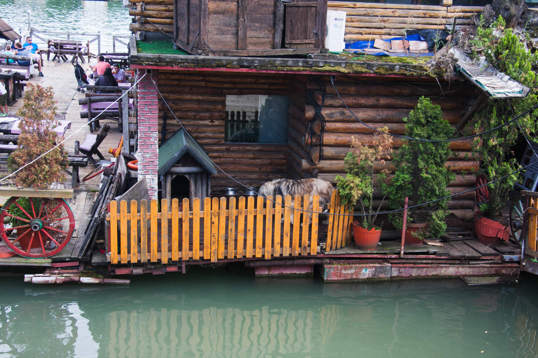 Raft with a restaurant on it. Most of the coast of both rivers in Belgrade is stuffed with them. They usually float on barrels or sheet metal boxes, then above it's wood for the decks and the building, and metal for the parapets and gangplanks. YMMV - there are fancy ones where you get a tidbit of designer food, nice to look at and remain hungry afterwards, usually at least 20% more expensive than others. Then there are less fancy ones where the food is great, plentiful and prices are regular, and then the small operations, family businesses, with little staff, short menu - but what they have is excellent.