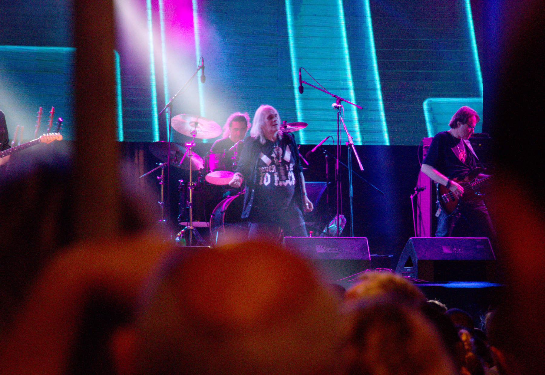 At around 23:20 (only 20 minutes behind schedule... even local rock has gone to hell... 30 minutes was the minimum once upon a time) Riblja čorba started playing. Much better, Bora wasn't sparing his voice and the whole band was playing like they were on a stadium in Belgrade. Though he made three mentions of the attempts to change the name of the city (not again, and not to Petrovgrad, fuck you), to which I showed him the finger each time and once shouted "eat shit", he was good and did all the right things.