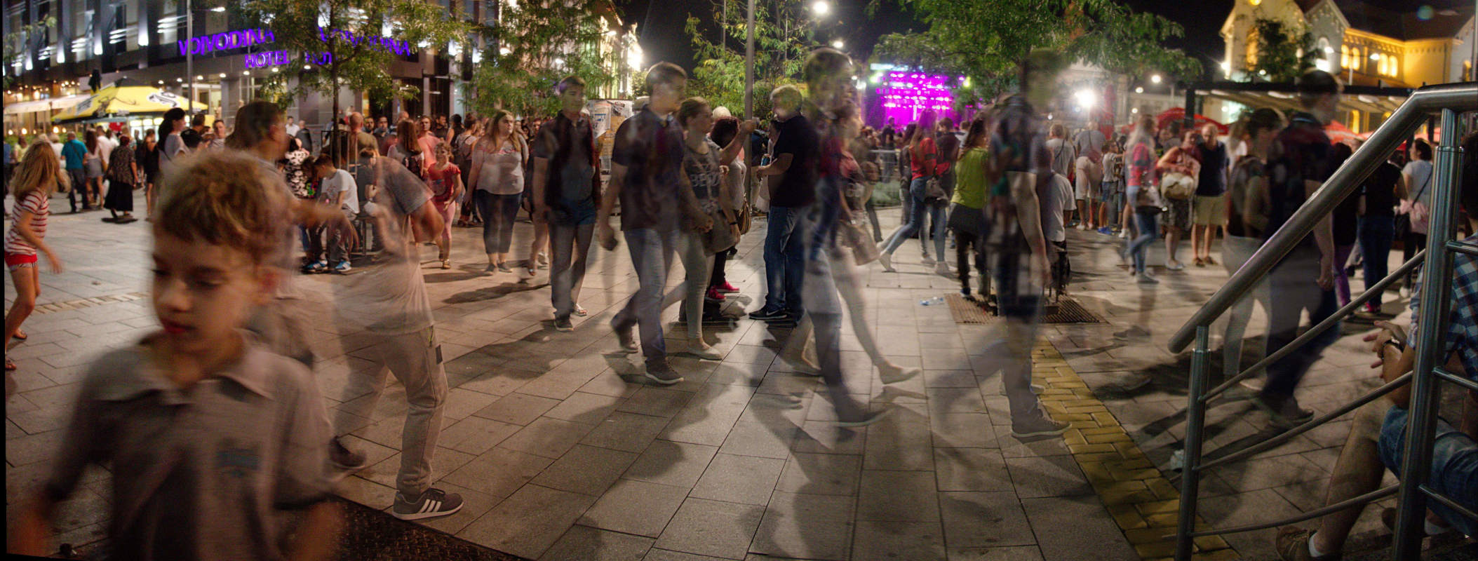 So after a couple of songs we decided to have a beer. Went to The Library (the only remaining cafe in gimnazija street with benches and tables on the pavement and decent music, but they were full. So we just walked back, and around, and back to the square. Just before getting there, I recognized Dragana from behind - with her specific combination of haircut, size and below-50kg-line, I couldn't miss. She was with her sister and her husband, who both seem to know us, though I coudln't say I've ever met them or that I'd recognize them if we met again. We couldn't talk, the PA was about 20dB above needed. So we just shouted a "LATER!" to each other and parted.