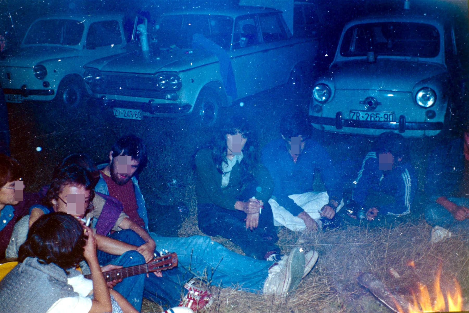 Judging by which jacket Vanji wore, this must be the year when we drank the most, and at some point we were just sitting around and drinking more, after having done all the shouting, jumping over the campfire, roasting the sausages on a stick and eating onions as if they were apples that we cared for, and then Dženk tried to sing. To which Eči just said "a lófasz a segébe, öt forint zsebembe" (a horse dick into his ass, five forints into my pocket), which nobody would translate in public (but she did for me). And that had enough laughs, there were at least six or seven people who spoke hungarian. Still, Dženk wasn't easily dismayed, and this scene repeated three more times, for good measure.