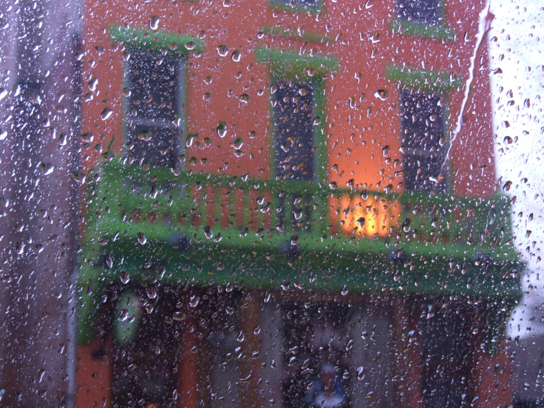 I recognized several places again, from the times when I drove here to catch the train to NYC, but no use of that, I still didn't remember how I got out of it then. This silly façade, with unusually lively colors, appeared while Lena navigated, using the geepyess on her E71 nokla (the cost of that usage was 10$ in the end). She did lead us out of it, and then I took another wrong exit and instead of hitting the I-95, got myself driving through Crystal City, where I tried to get a job ten years ago, and then took that route all the way out of town, where I finally got to the highway. Specially between Dale City and Quantico, it was sloooow, even in the HOV lane. For this last part I drove in fourth, sometimes third, gear (out of six), taking care to see the back lights of the car ahead of me. Nothing else was really visible anyway. That's the rain curtain. It would ease down, then hit us full force, then ease down, some 4-5 times.