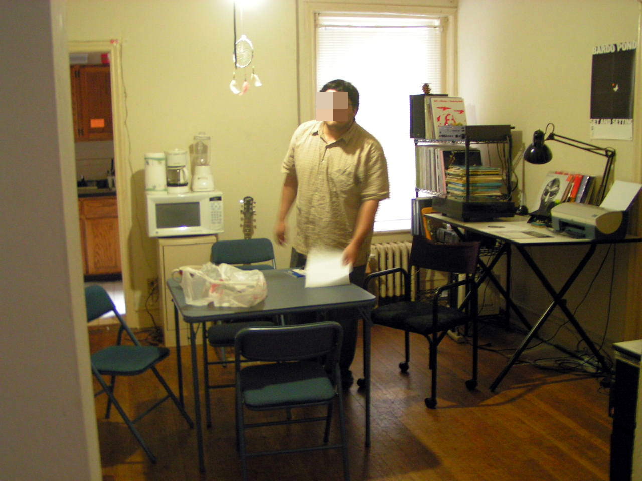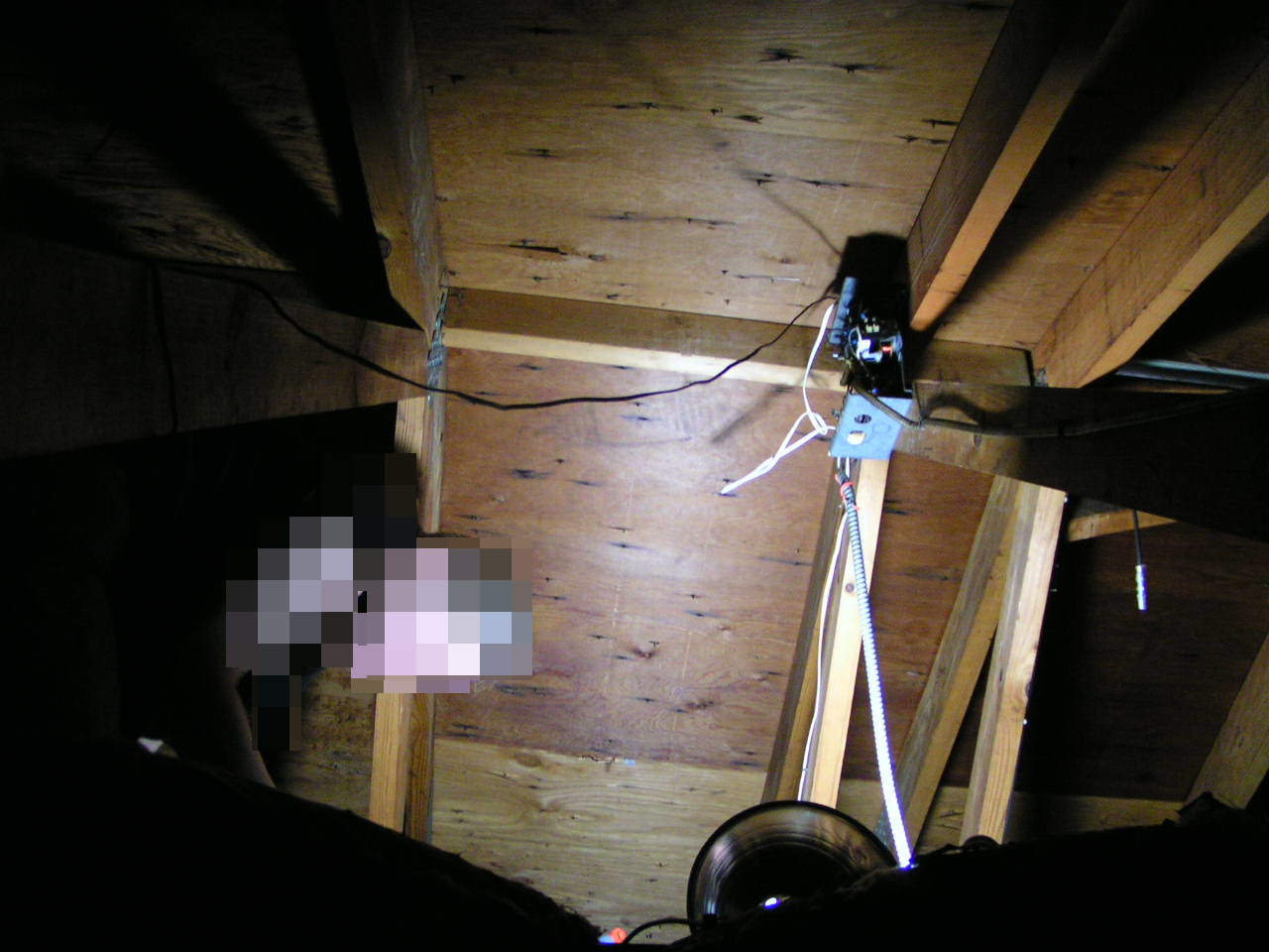 To bathe, we had to stand in a plastic tub, knee high, which was originally a box used for the move. The limitation was that we couldn't run the water full speed, because we'd had to mop the water later. The room has its own floor sink, but it doesn't look right. Even if I could unclog it, it still seems too small. So just watch out not to spill out more than we can mop. And this contraption worked almost the whole year, until we got the upper bathroom fixed. Sometimes we'd use the kids' bathroom in Richmond, always wary of chunks falling from the ceiling.