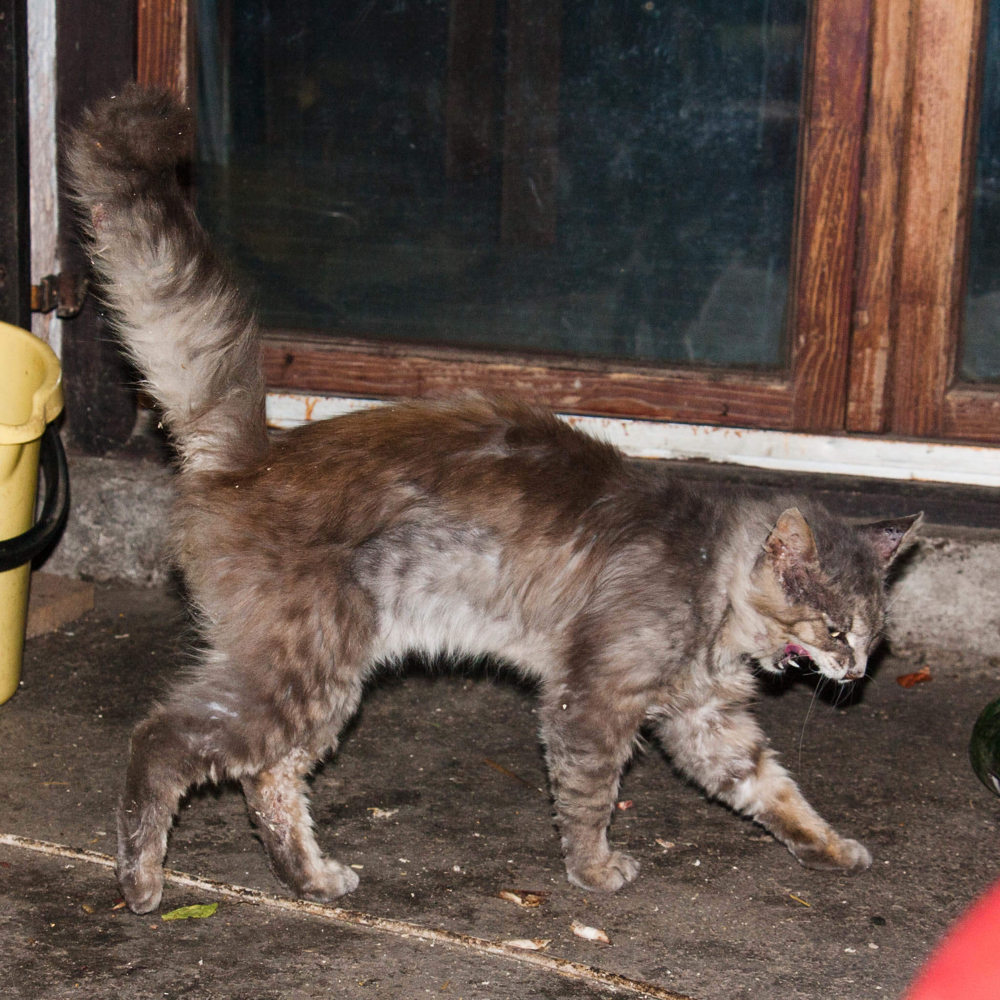 In other news, Donald is fighting again for... um, genetic reasons. He's full of scars and fresh wounds. In the summer he's this thin, looks like four pencils glued to a marker. In winter, he gets so much fur that his volume practically triples.