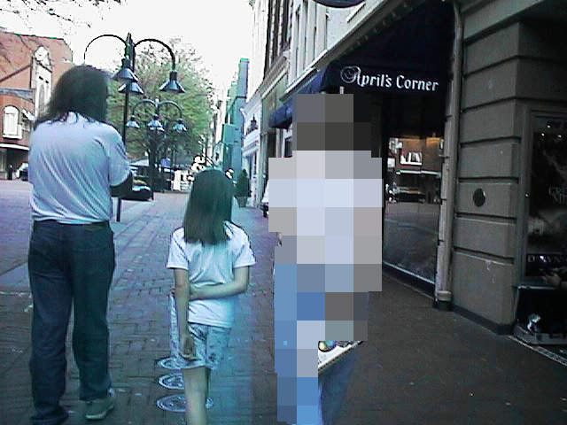 Next day was a sunday, so we went for a walk - first downtown. Parked in a parking garage, top floor. If you buy something on the main street, you get a stamp on your receipt to show at the garage exit, it's free then, the shops finance the garage, so the customers would come). And we did buy something - even at this shitty pixel count, I recognized the cover of the book in her hand - a collection of european SF from fifties-sixties, second hand.