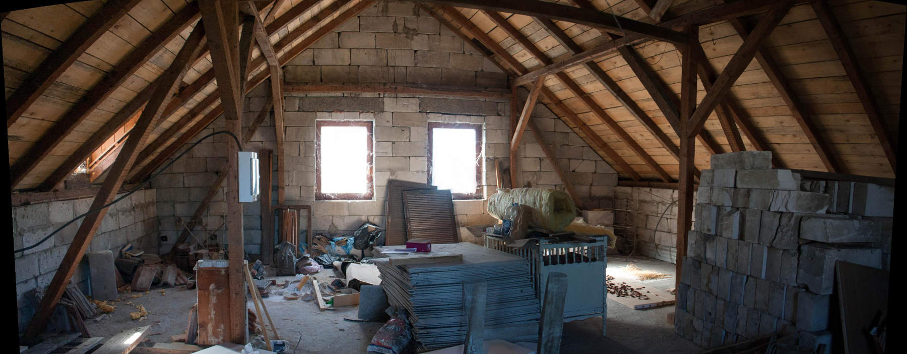 The white box on the left beam is the fuse box, which Mića installed last time, so I'd have power up there if there's a need to do some work.