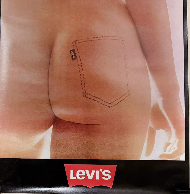 All walls and ceiling we soon plastered with pictures from Playboy, Lui and Start. Exactly under the ceiling, in the corner facing my pillow, there was a Levi's ad. One perfect butt, with a drawn pocket seam. Unforgettable, and the gentlemen who created the ad have hit the essence of it.