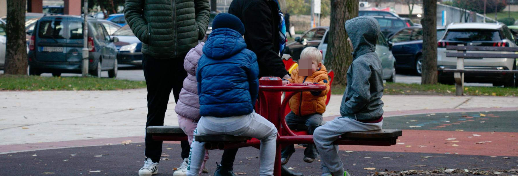 After the munch we, of course, went for a walk, partially so we two could smoke a couple, partly because it's already our regular sequence [of things]. She can barely wait to go anywhere, and knows all the places on the playground - not the one behind the long building, which is even somewhat neglected, but the one closer to Ušće, where these toys are in somewhat better condition and it's not a concrete floor but the soft stuff. She knows everything already and specially beelines for the carousel, where she wanted to joši (v. house dictionary, jošiti).