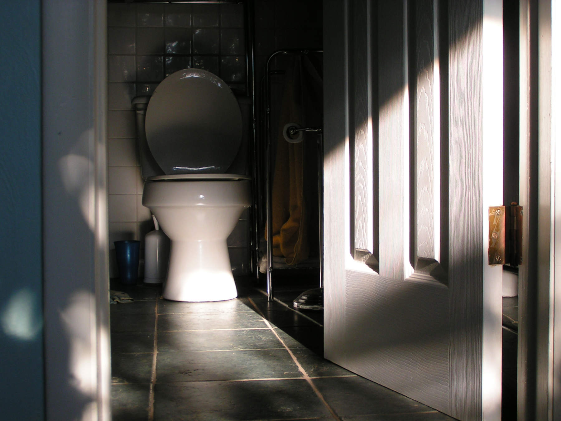 That is, the neigbor's tree found its way trough the drain hole, though we covered it with particle board (which was also laminated on one side). It spread so wide that the main trunk of it was thick as a finger, and we managed to take it all out in one piece. Worse than chickweed. The tub was similar, even though we covered the hole with a piece of tile - the root found its way there too. It dawned on us that this won't work until we figure out a way to have proper pots, disconnected from the floor.