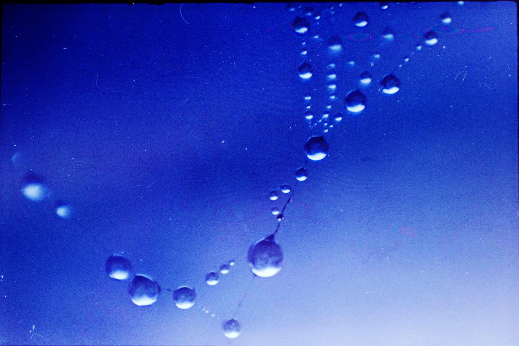 And then I had to do this too, because it set itself up right in front of me as I sat to write that note. The spider web spanned the upper frame of the banister, and the dew had condensated on it. Thing like this can't be let to pass away, one rather unscrews the objective, and leans it backwards, the handy technique for macro photography which I perfected ever since I got the praktika, and snap. Didn't turn out bad when printed on paper, but now as it got scanned and I managed to drag out the contrast the way I then imagined it should be, it finally looks like I wanted it to.