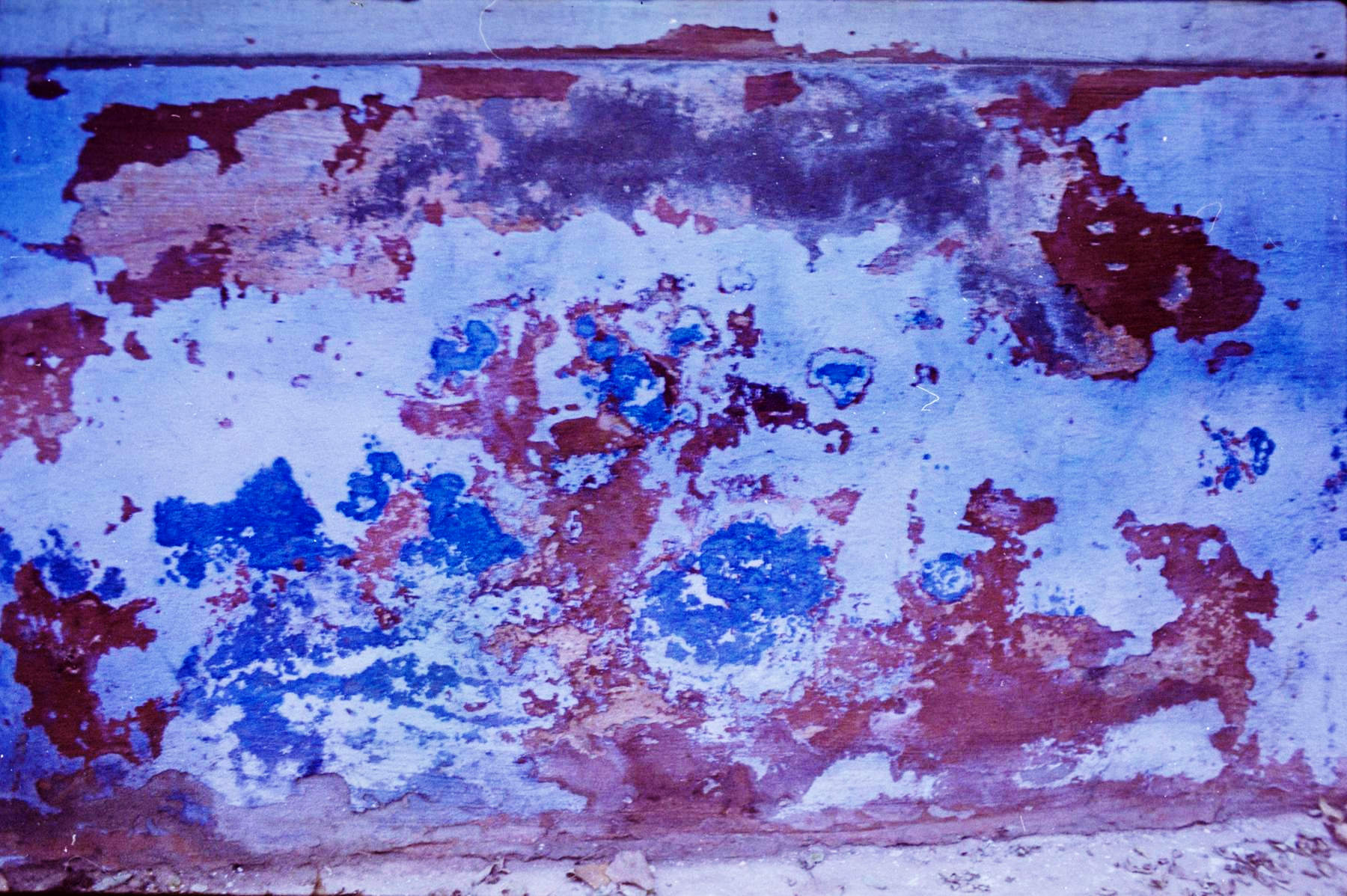 We came to him one morning, there was a really good fog, and didn't find him at home. So it happens, most of us have no phone lines, so every now and then we spend half an hour of walk to go kiss someone's door. We left him a note. His backyard is really pictoresque, the pressed clay walls were whitewashed with earthen colors probably at least twenty times so far, and each time the humidity would push out and the wall would shed a few layers of paint, in a spotty manner. I couldn't resist, now that we've got into the swing with developing color material, I simply had to snap this shot.