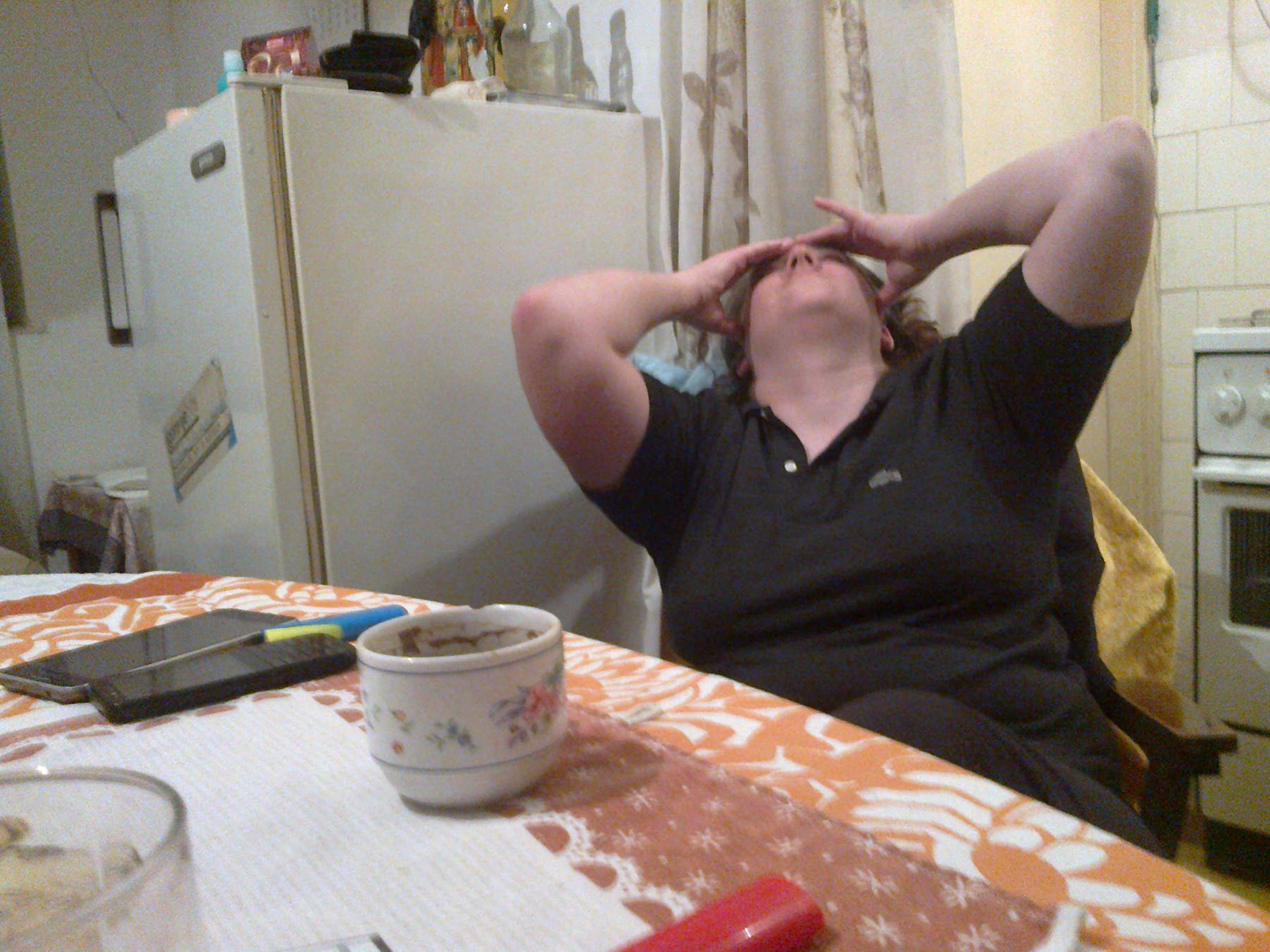 Донео сам из друге собе преосталу фотељу (ћале је поломио доручје и ногу на друге две, кад је падао и покушавао да устане последњих пар година). Угурали смо је уз шпорет у кујни, врата од шпајза се сад не користе много, па је то служило за дремку.
