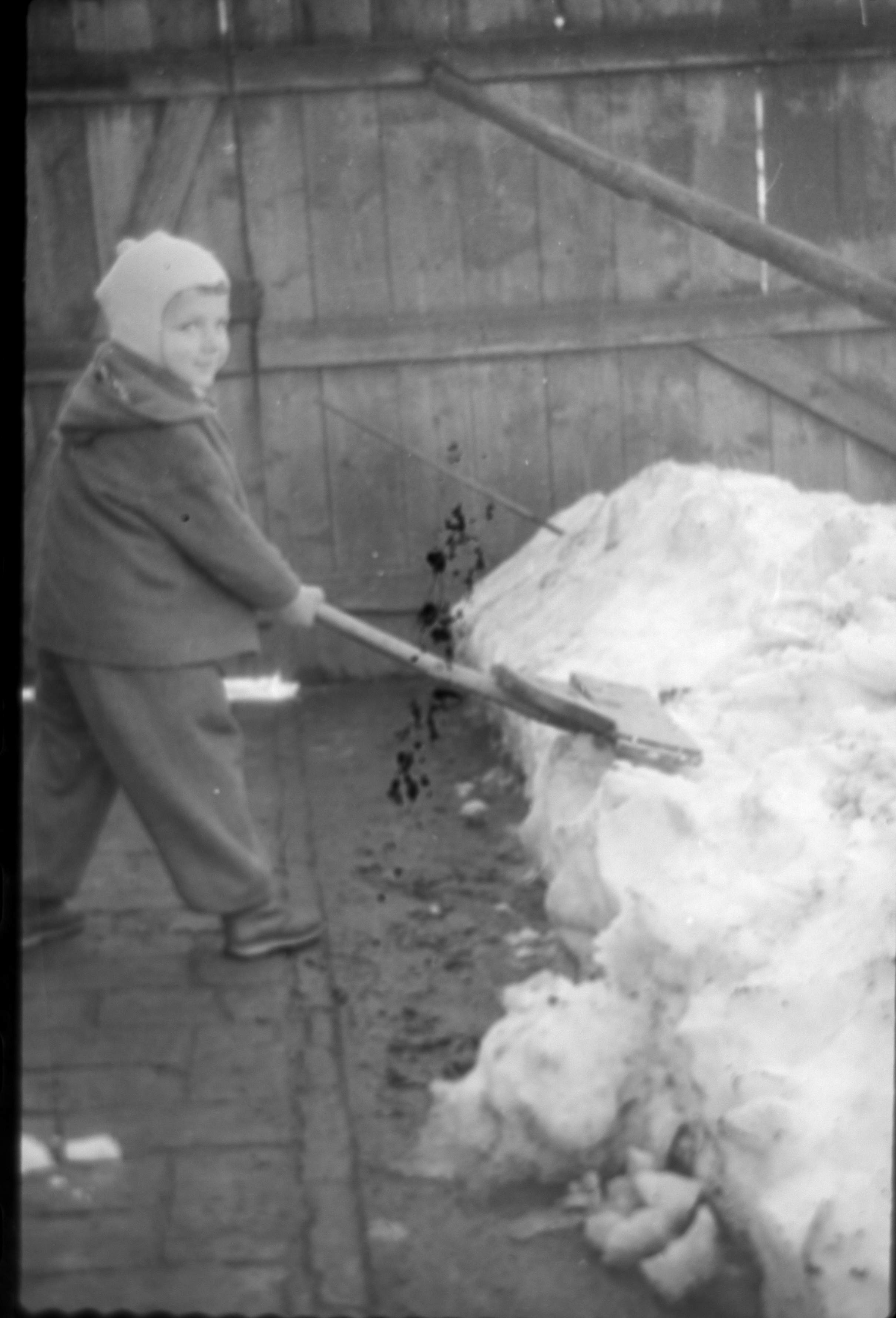 Двориште је било поплочано само уз кућу, и то циглом, како је био обичај. Цигла је била јефтина, свако село је имало циглану. Никад није било баш равно, па се тешко чистио снег, нарочито тим склепаним лопатама од предебеле даске. Ергономски негде око нуле.