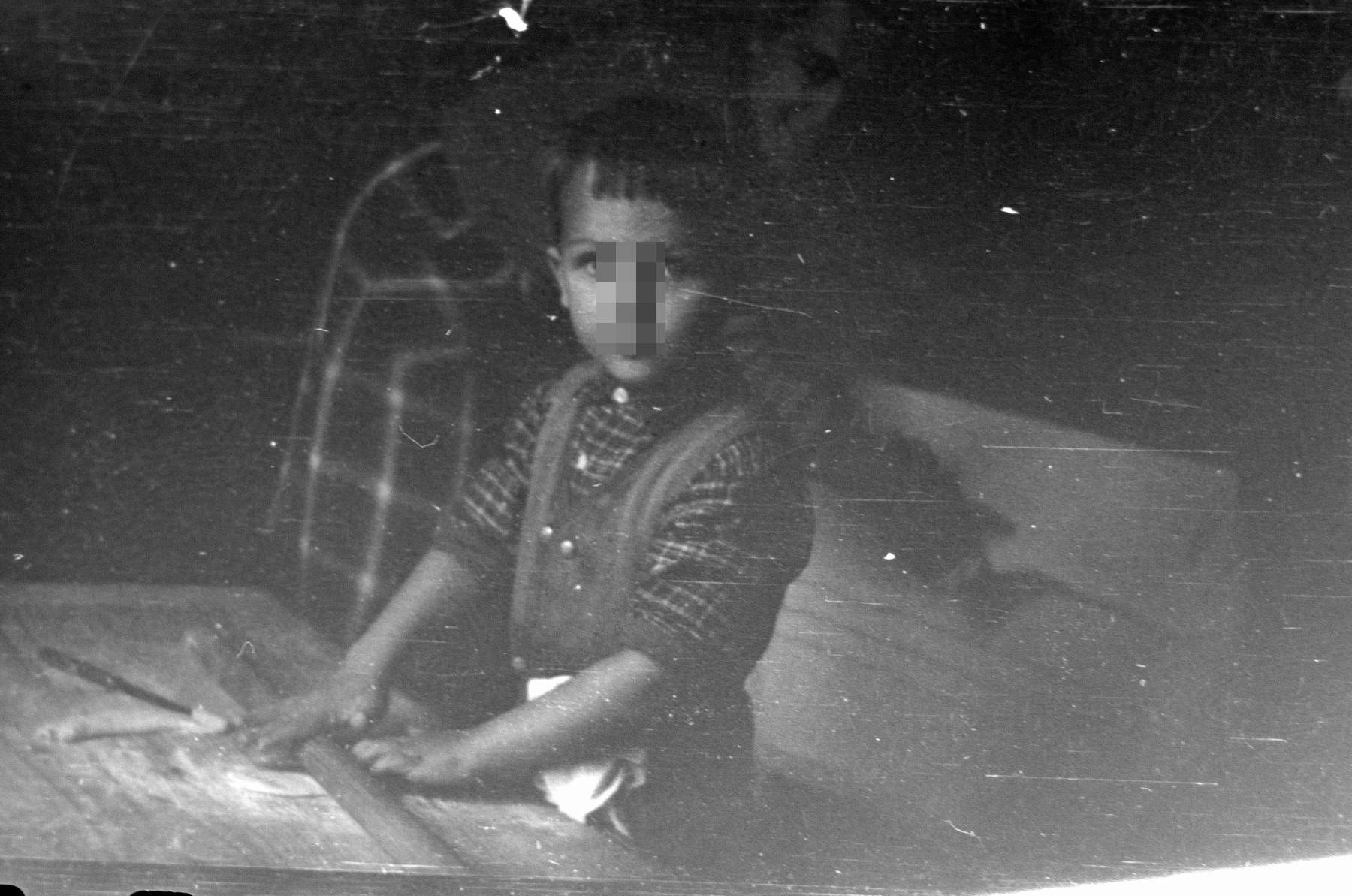 Ја са бакином оклагијом и даском. Даска се извлачила из свог места под фијоком у кухињском столу, где је стајала кад се не користи.