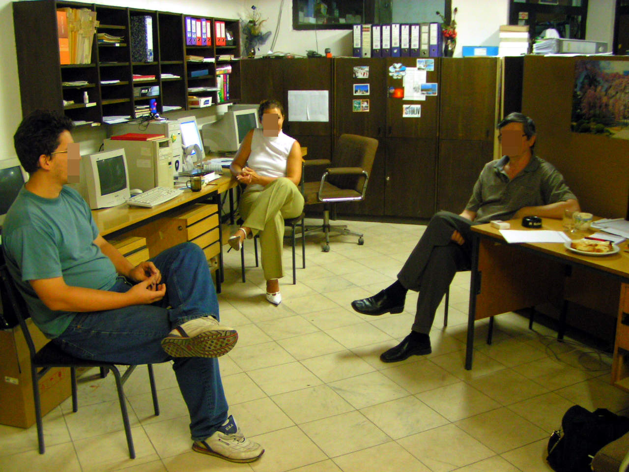 Овај лево, неки Шошкић, је можда саставио месец-два кад сам ја отишао, био тада Кечиги шегрт; Нена је у пуној форми, а видим и ципеле шиљате као што се сад носи тамо, само нисам беле виђао. Ма, амерички смисао за боје се састоји у самопорицању. Сале (десно) исти као што је и био. Нисам сигуран да ли је доручковао, и ако јесте, да није случајно на празан стомак. Деловао је умерено весело. Ма сви су се обрадовали што ме виде, посебно Грги кад је наишао током кафе. Мислим да сам видео и Милку; остали су били којегде на терену.