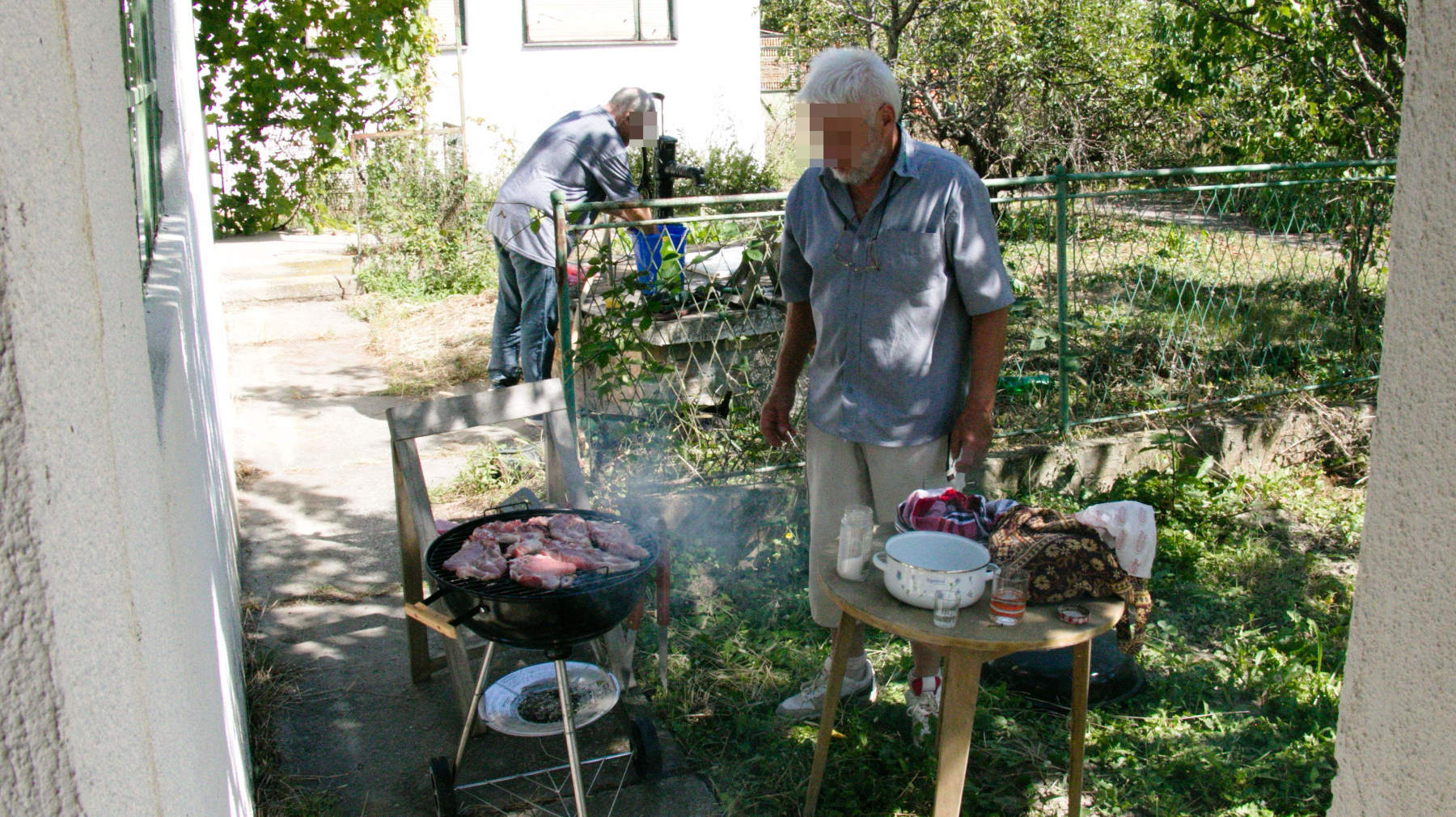 Осим што ту није био крај. Таман сам приметио да је већ прошло подне и да ваља размислити о клопи, па кренуо да палим ватру у роштиљу (што ми није успело из прве, навикао сам код куће да то радим бренером), кад ето га Средљак. Прихватио се кајсије (не знам које, јер је на столу било четири, не рачунајући ону јутарњу - једну из 2019. што је донела Јасмина и другу њену из 2020., па једну што је донела Мима прошле године, а донео је и Сташа једну овогодишњу). Био је баш добро расположен, па кад сам најавио да ми понестаје надахнућа и да тражим ко би се прихватио роштиља, јавио се он. Преместили смо роштиљ у хлад од кајсије, снашли се за посуђе (стари румунски тањири уместо шерпе, јебига) па је кренуо. Техника му је скроз другачија, никад није користио поклопац, и не гаси ватру кад се појави него само брзо премешта ћевапчиће, ал баш га је добро испекао. Договор је да догодине он то замеси, само меса, соли и бибера, по старом рецепту као што је некад било у Кантини, а ја направим левак па да обликујемо ћевапе на лицу места.