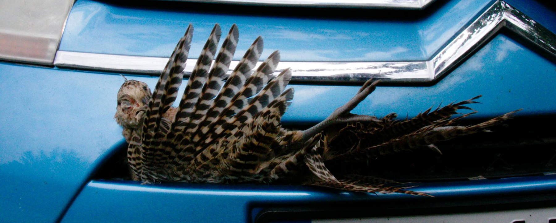 Понедељак пре подне, седимо, она спрема мусаку од тиквица, неко куца на врата. Болди, затекао се у крају, хтео да оде нешто до Бранка Глумача („Жив ли је?“ „То и мене занима“) па свратио да нас види. Каже „а фино си украсио кола спреда“. Мислио сам да ме частила птица овећим гованцетом посред ветробрана, ал јок, каже „па како је било у лову?“. Једва некако објасни да имам фазана напред, „како ниси приметио, мора да је зато што си паркирао унатрћке... а и да си напред, опет не би видео, идеш право ка улазним вратима“. И погледам после, онај фазан није подлетео него баш налетео, и добро се закуцао, ту сам мора бити возио око 90-100 км/ч. И шта ћу, одем после са најлон кесом и ишчупам га па у канту за ђубре. Срећом, птица је па неће смрдети, једно маче па смрди три дана кад угине негде у буџаку, птице јок. Угинула је и још једна кокошка, остало их шест, и петао, а онда и два црна мачета. Редња.
